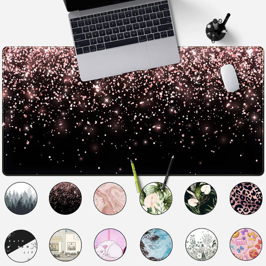 Rose Gold Glitter Black Desk Mat Extended Mouse Pad XXL Office Desk 31.5X15.7 in Accessories for Women Girl Gamer Full Desk Large Gaming XXL Mousepad Laptop Computers Keyboard Office Mouse Mat